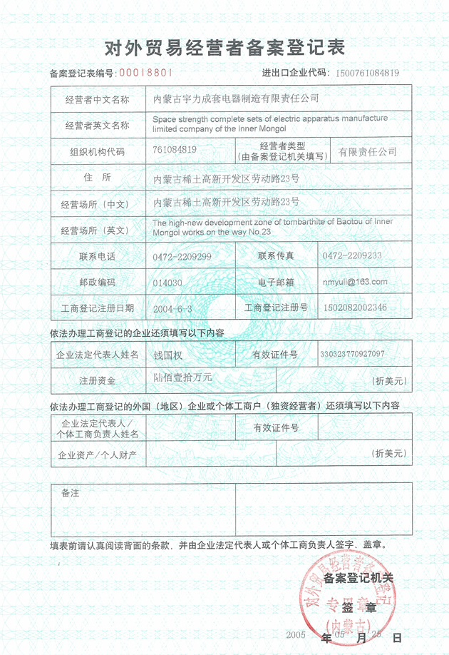 對外貿易經(jīng)營者備案登記表
