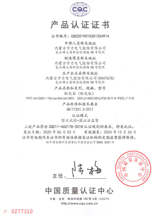 YPXT配電箱(CQC認(rèn)證)