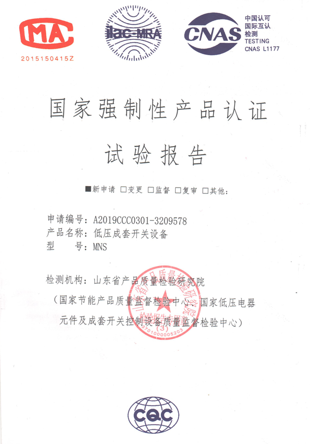MNS2.0低壓成套開關(guān)設(shè)備(試驗(yàn)報告)