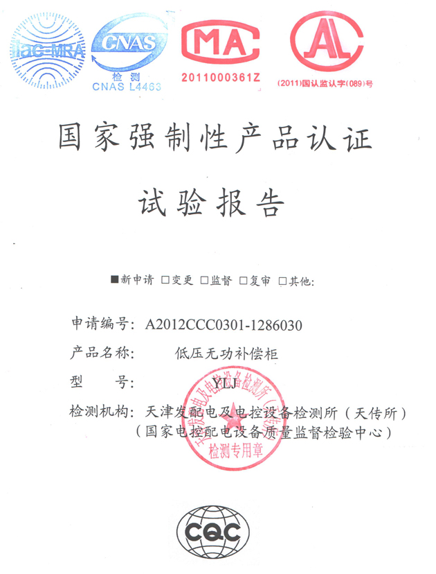 YLJ低壓無功補(bǔ)償柜(試驗(yàn)報告)
