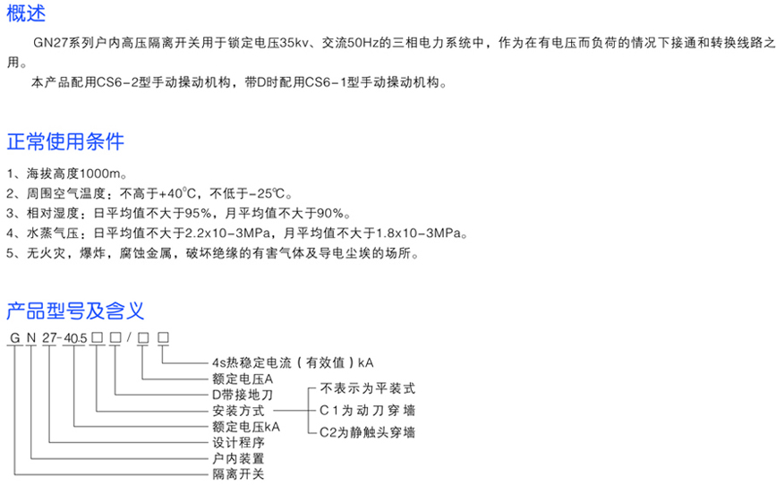 GN27系列戶內(nèi)高壓隔離開關