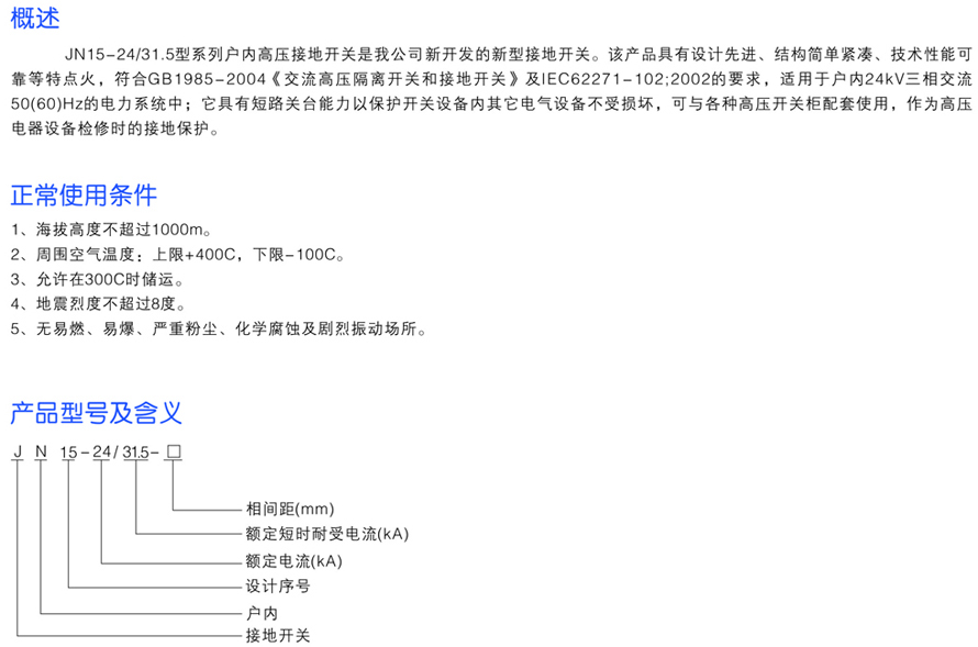 JN15-24/31.5戶(hù)內(nèi)高壓接地開(kāi)關(guān)