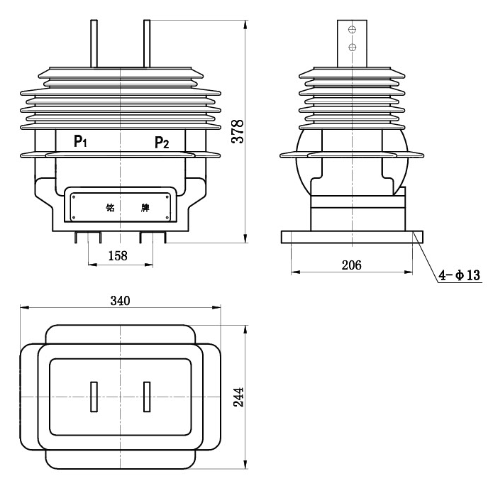 本型電流互感器為環(huán)氧樹脂真空澆注全封閉支柱式結構, 主要適用于額定頻率為50Hz或60Hz , 額定電壓10kV及以下電力系統(tǒng)中作電能計量、 電流測量和繼電保護用。