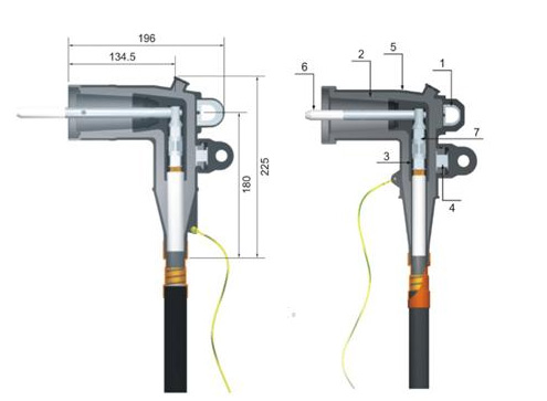 式變壓器及其它設(shè)備的連接,為全絕緣、仝密封的插入式終端頭.其額定電流200A。其導(dǎo)電桿連接又具有滅弧功能.與帶有滅弧裝置的200A套管連接,可作為負(fù)荷開關(guān)操作200A電流。操作極為方便.但不能切斷短路電流。適用截面35-185mm。