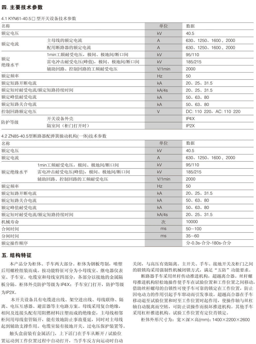 KYN61-40.5鎧裝移開式金屬封閉開關(guān)設(shè)備