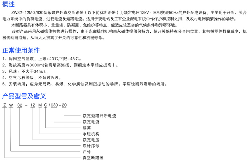 ZW32-12MG/630系列永磁戶外真空斷路器